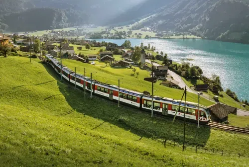 პირველივე წუთებში მატარებელი ულამაზეს ხეობებში და კლდოვან ღრმულებში შედის.პატარა წითელი ვაგონი ნელა მიუყვება მთებს, გადადის ხიდებზე, დაკლაკნილ ლიანდაგებზე და ყოველი მოსახვევის შემდეგ ახალ საოცრებას აჩენს: • წიწვებით დაფარული ფერდობები • ცაში გამოკიდებული თოვლიანი მწვერვალები • ალპური სოფლების პატარა სახლები — ზუსტად ისეთი, როგორიც ბავშვობის ზღაპრებში.